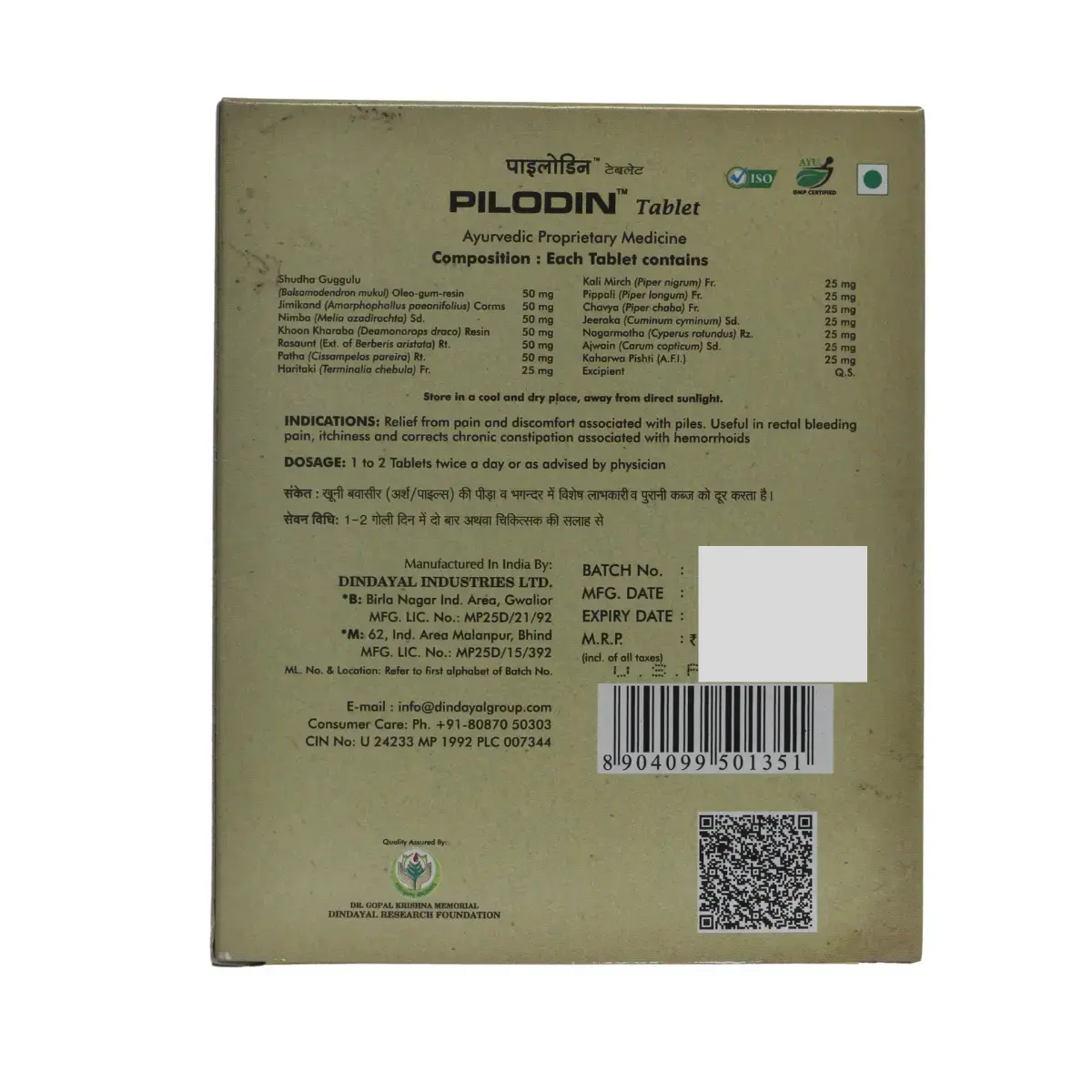 Key Ingredients – Shudha Guggulu, Jimikand, Nimba, Khoon Kharaba, Rasunt