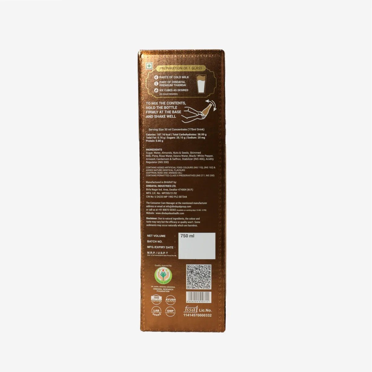 Main Ingredients- Almond, Nuts & Seeds, Skimmed Milk, Pista, Rose Water, Kewra Water, Black / White Pepper, Aniseed, Cardamom, Sugar, Glucose, Water