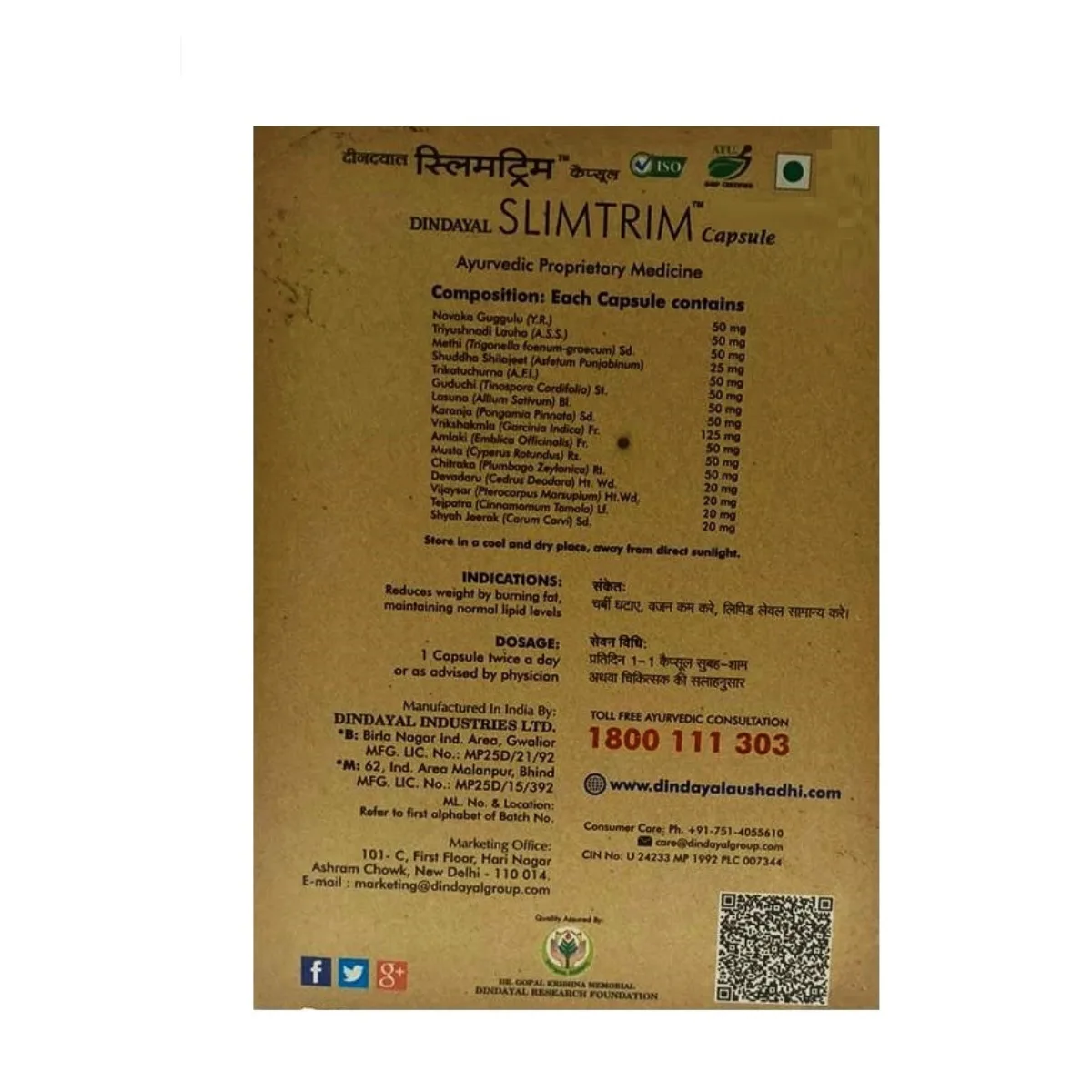 Dindayal Slimtrim is a targeted herbal formula designed to support healthy weight management. It helps burn excess body fat while maintaining optimal lipid levels in the body. This natural supplement promotes a balanced metabolism, aiding in effective weight control without compromising overall wellness. Ideal for those seeking a safe and sustainable approach to staying fit and active.